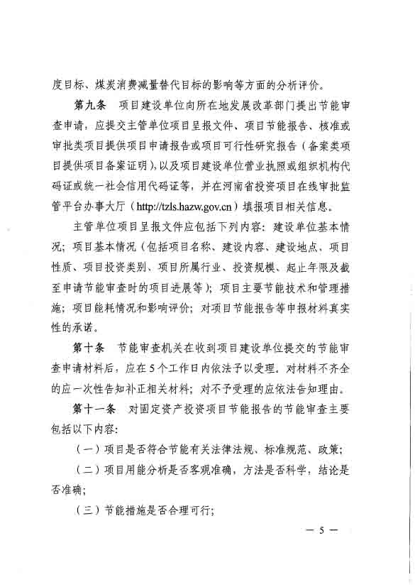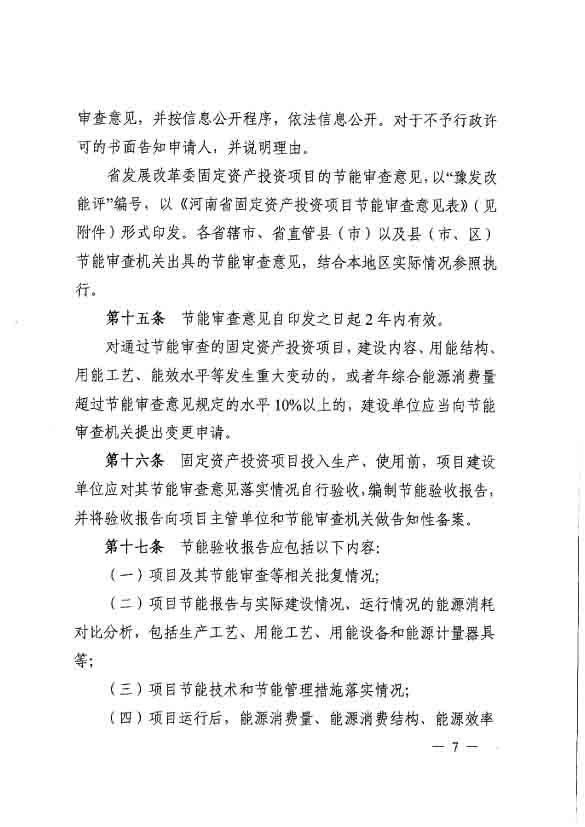 河南省固定資產(chǎn)投資項目節(jié)能審查實施細則
