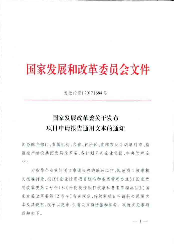 國家發(fā)改委關(guān)于發(fā)布項(xiàng)目申請(qǐng)報(bào)告通用文本的通知